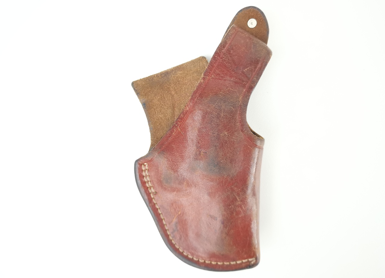 Braunes Lederholster passend für kleine Revolver wie z.B.: S&W J-Rahmen im Kal. .38/.357, wie z.B. Smith & Wesson Mod. 36 Chiefs Special. Auch für Schreckschussrevolver geeignet.