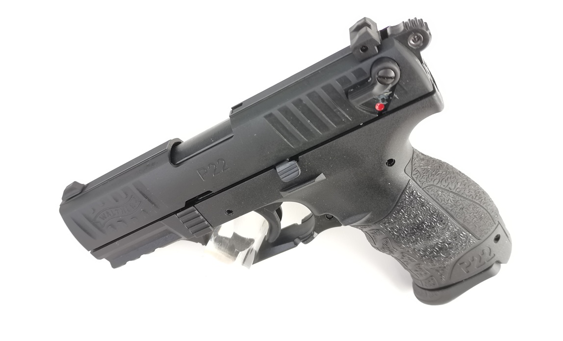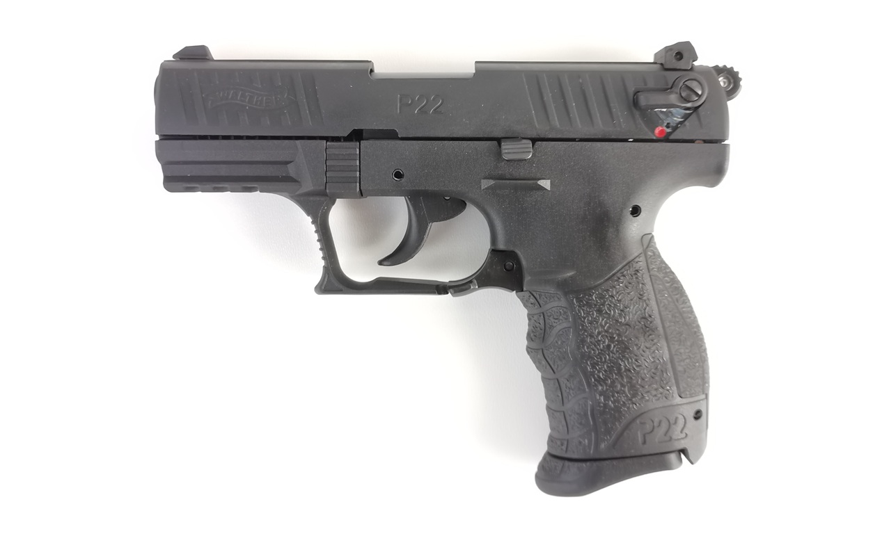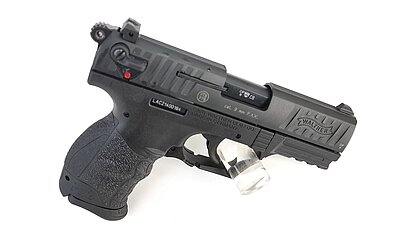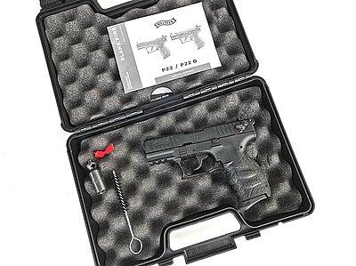 Nachbau der Walther P22Q in solider Qualität. Die Waffe kommt inklusive Abschussbecher und Originalkoffer.
