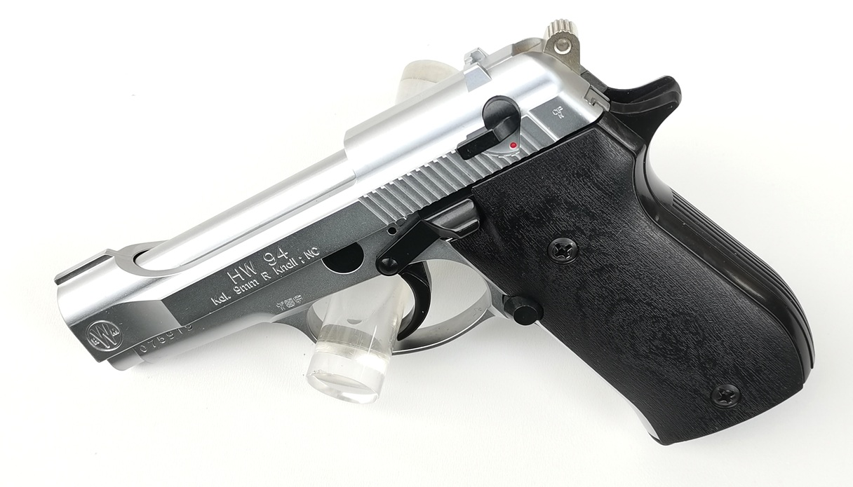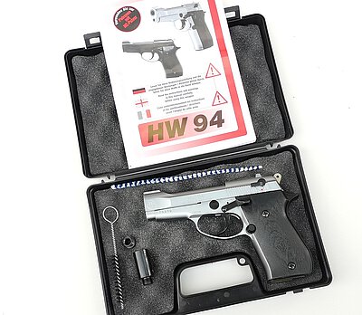 Die HW94 ist eine sehr solide und äußerst zuverlässige Schreckschusspistole. Mittlerweile ein echter Klassiker, welcher leider nicht mehr gefertigt wird. Das Kuriose an dieser Pistole ist, dass sie 9mm Revolverpatronen verschießt. Waffe ist neu und unbenutzt.
