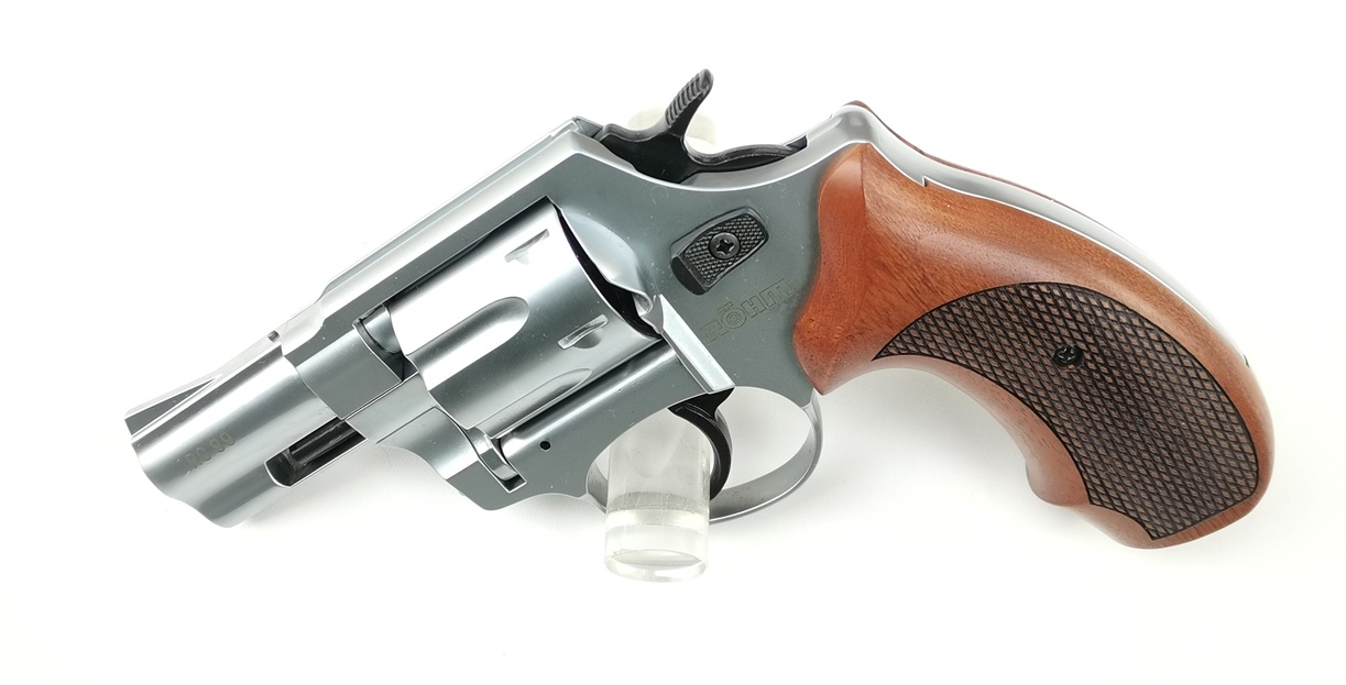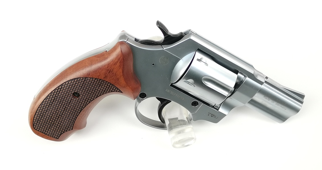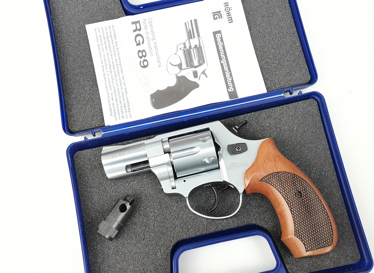 Röhm RG89 Revolver in solider Qualität. Die Waffe besitzt echte Holzgriffschalen und kommt inklusive Abschussbecher und Originalkoffer.