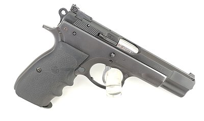 Die CZ75 Sportpistole verfügt über eine verstellbare Feinvisierung von LPA und einen überarbeiten Abzug mit Triggerstop.