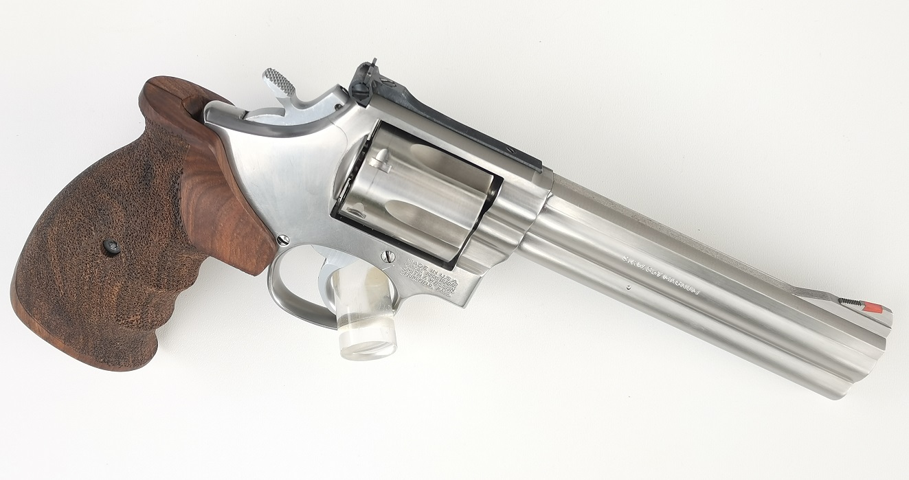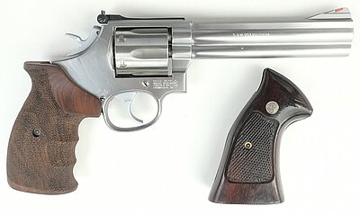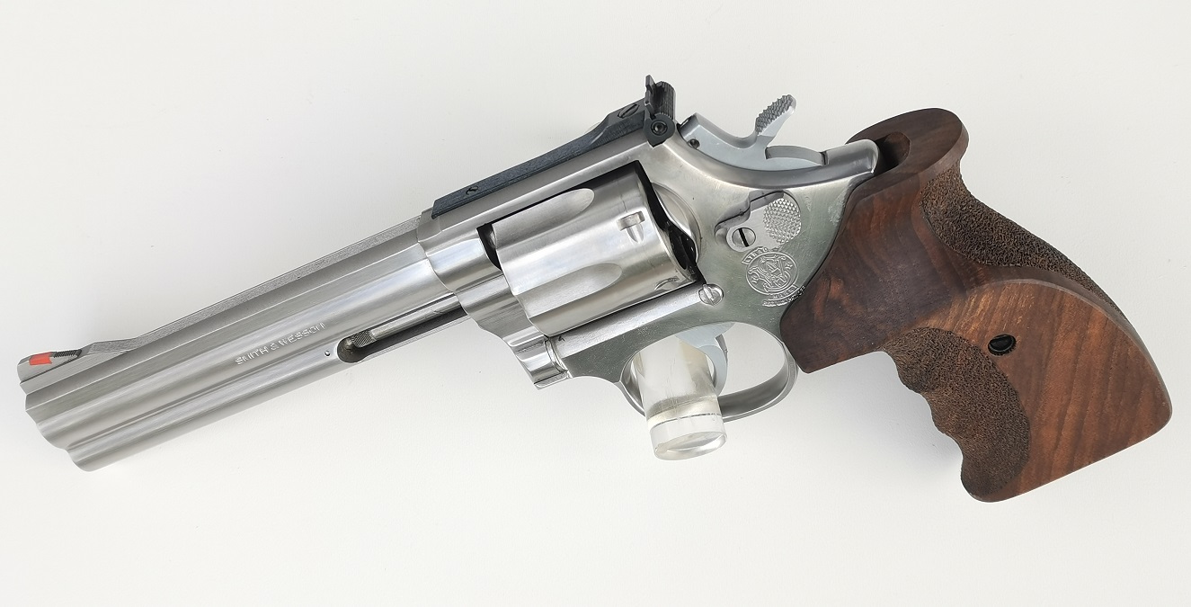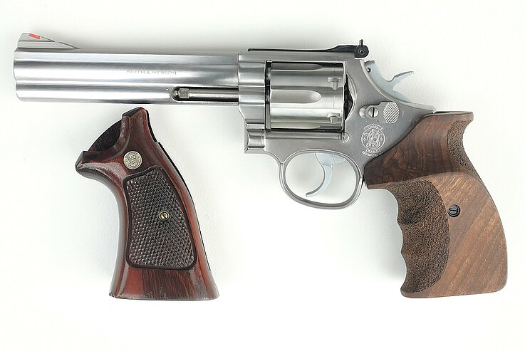Gerne dürfen Sie wählen, ob Sie den Revolver mit Matchgriff oder dem originalen S&W Griff wünschen.
