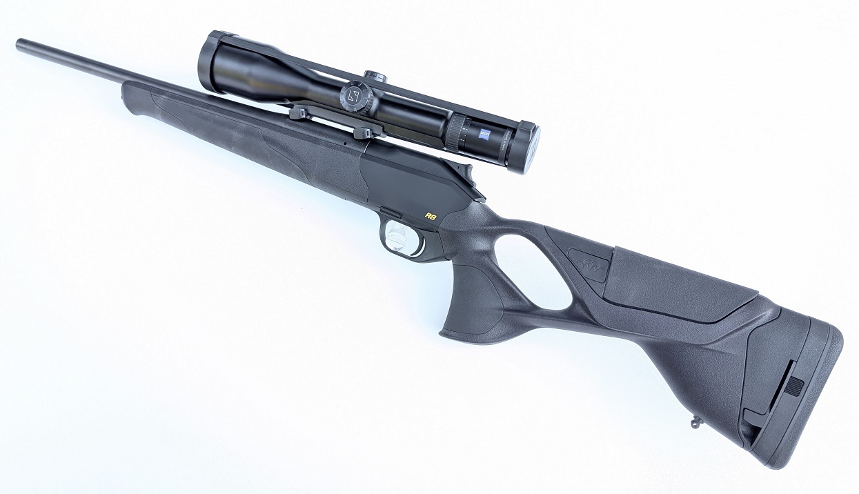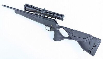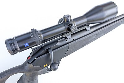 Bei der Blaser R8 handelt es sich um das Flaggschiff aller Repetierbüchsen. Der Geradezugrepetierer wird komplett in Deutschland gefertigt. Er verfügt über eine herausnehmbare Abzugsgruppe inkl. Magazin, eine verstellbare Schaftkappe und Wangenauflage, sowie über ein M15x1 Mündungsgewinde. Das Zeiss Victory HT 3-12x56 mit Abshen 60 ist mittels Blaser-Sattelmontage montiert.