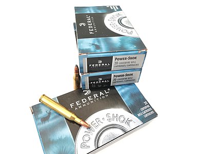 Mit im Lieferumfang sind 60 Schuss Federal Power Shok Kal. .25-06Rem. enthalten.